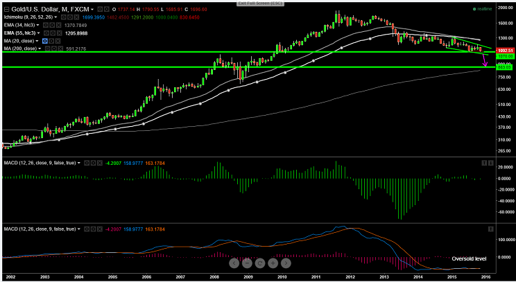 - Any break below $1040 (trend line joining $1130 and $1071) will drag the pair further down a decline till $800 is possible .