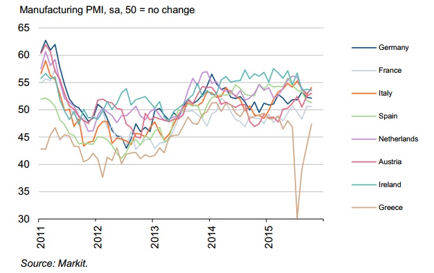 - Netherland, another key Euro zone country saw its headline PMI move up to 53.7 from 53. Production rose further and job creation growth has hit 53 month high. However new orders rose at slowest pace since June 2014.