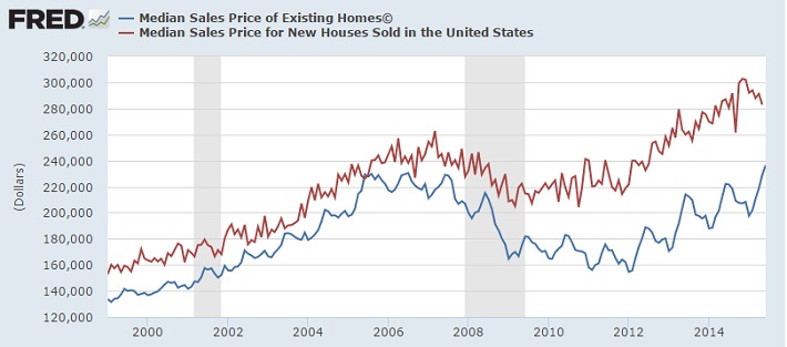Median sales price for both new homes and existing homes has crossed their pre-crisis peak.