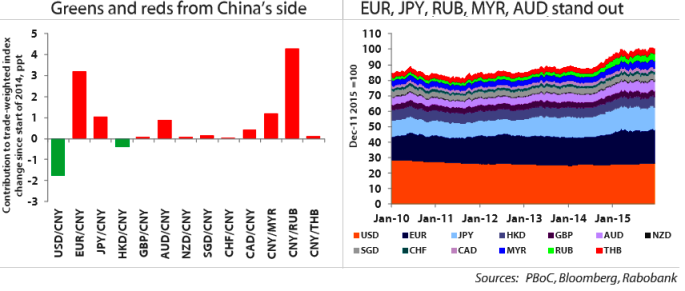 AUD, where a further decline this year has added 0.9 points to Chinese trade-weighted basket despite a relatively low TWI weighting.