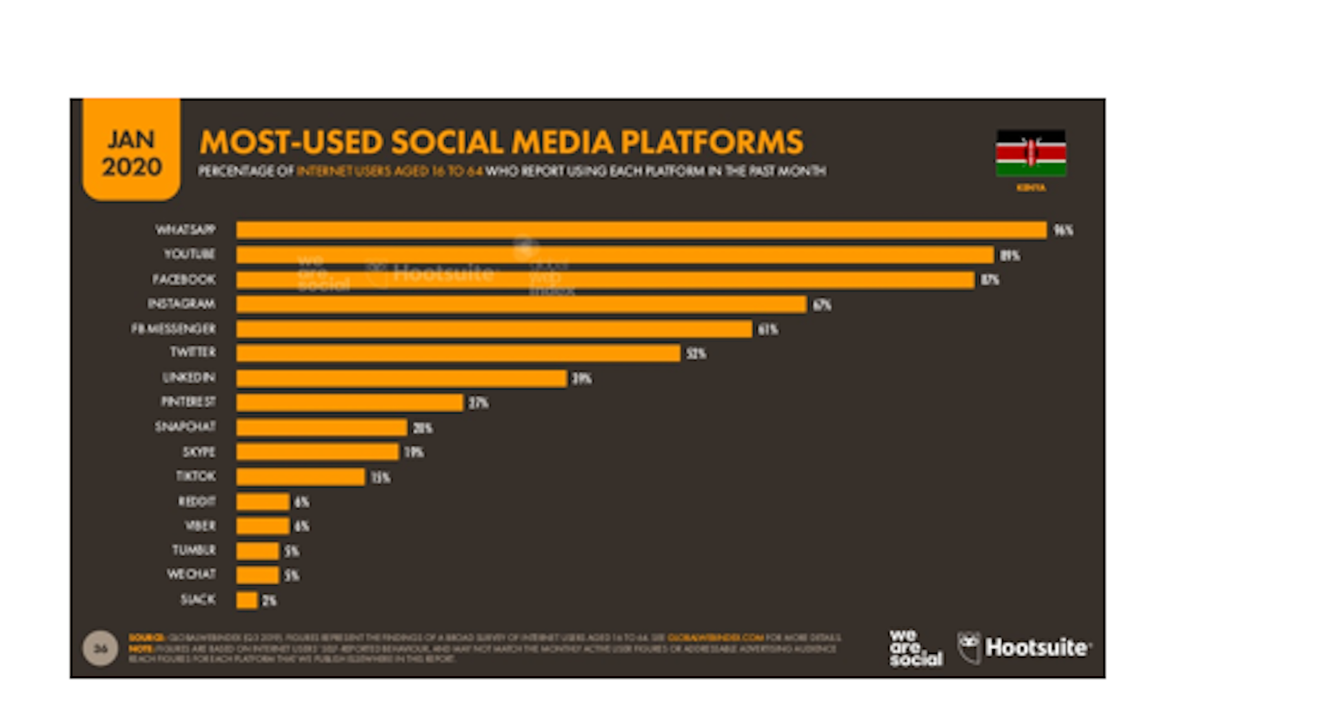 The greatest attraction for politicians is the large number of Kenyans on social media. The latest data put internet penetration at 90%. There are 8 million social media users and over 80% of Kenyans visit platforms such as Facebook, YouTube and WhatsApp.