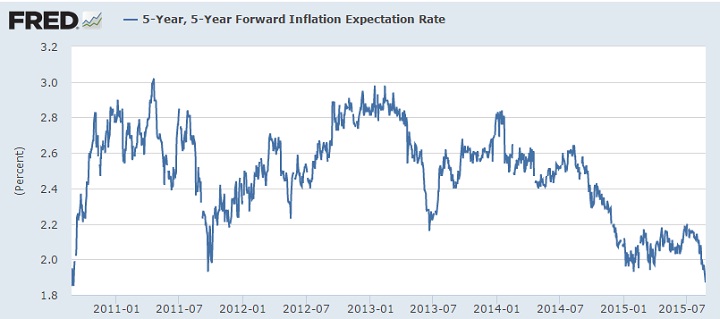Rise in global volatility has pushed investors to the safety of treasuries, which has pushed expectations of inflation down.