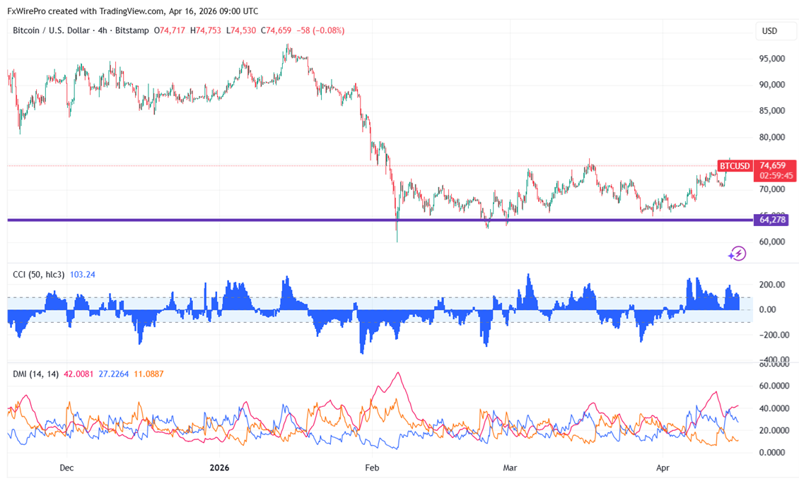 BTCUSD trades higher on improved institutional demand...It hits an intraday high of $75181 and is currently trading at about $74721.