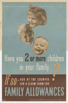 Poster used to advertise the new family allowance - 1945. The National Archives