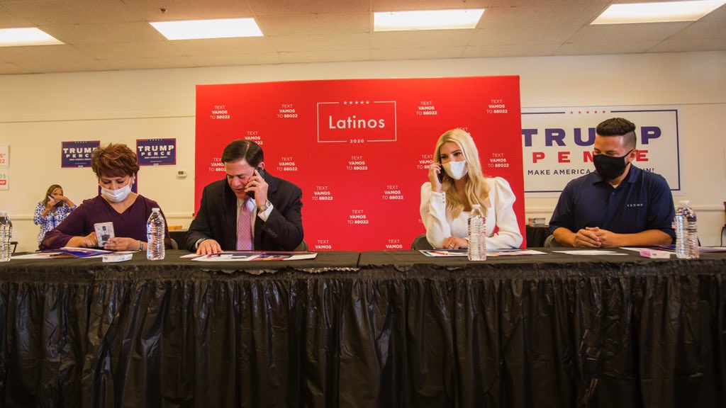 Ivanka goes on the campaign trail for her father this week, making stops at battleground states to make the case for her father’s reelection. The White House adviser visited Phoenix, Arizona, on Wednesday, where she made a surprise visit to the Latinos for Trump group headquarters. This surprise visit comes before her roundtable discussion with Arizona governor Doug Ducey later in the day.