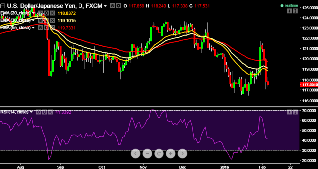 We prefer to take short position in USD/JPY around 117.75, stop loss 118.31 and target 115.65 levels.