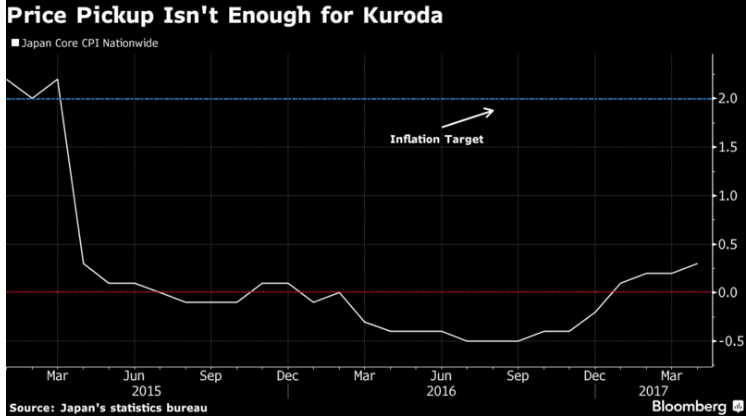 In Japan, data from the Internal Affairs Ministry showed on Friday that Japan’s core consumer inflation gauge rose for a fourth month in April, the longest run of gains since mid-2015, but remains far below the central bank's target. Both headline and core CPI inflation for April increased to 0.4 percent y/y and 0.3 percent y/y, respectively, but they remain well below the Bank of Japan’s (BoJ) target of 2.0 percent.