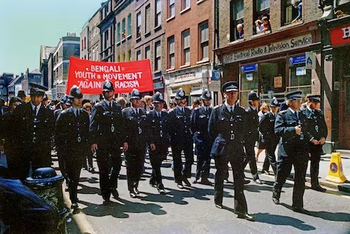 Across the UK, Asian youth movements rose up to protest against skinheads, National Front members and other bigoted groups. The Southhall Youth Movement and wider Sikh community was prompted into action following the racist murder of an 18-year-old engineering student, Gurdip Singh Chaggar, in 1976. And a group known as the Bradford 12 formed in 1981 following racist attacks on and police harrassment of young Asian and Afro-Caribbean men. They led a five-year campaign against police racism and racist immigration laws.