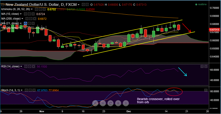 - Kiwi bulls left unimpressed on Thursday after NZ Q3 GDP data came in only slightly ahead of forecast, the pair was dumped towards 10-DMA at 0.6724.