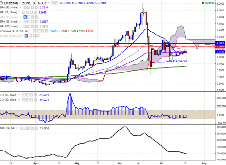 LTC/EUR is seen going up in trading on Tuesday. The pair has jumped till 3.790 and slightly retreated from that level (BTCE). It is currently trading around 3.75 at the time of writing.