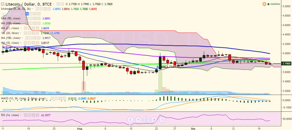LTC/USD hit a fresh low of 3.75 levels on Thursday before restoring slightly above to 3.78 levels at the time of writing (BTC-e). The recent announcement about an upcoming Litecoin integration into Jaxx blockchain wallet has failed to trigger any buying interest.