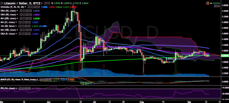 LTC/USD fell to 3.77 levels earlier in the day, before restoring to 3.83 levels at the time of writing (BTC-e). It continues to hover around 200-day MA.