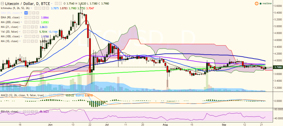 LTC/USD has bounced back after hitting 3.75 levels and turned green on Friday (BTC-e). It is currently trading at 3.82 levels (BTC-e).
