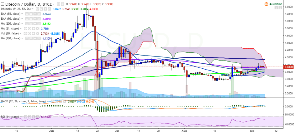 “LTC/USD must break above September 04 high of 4.03 levels for further upside”, FxWirePro said in a statement.