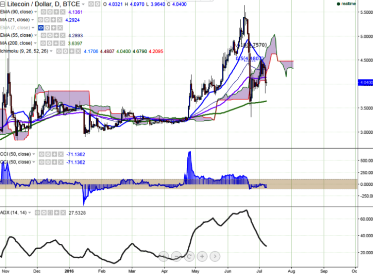 Following the massive plunge seen on Thursday, LTC/USD continues trading weak in a narrow range. It is currently trading at $4.01 levels (BTC-e) at the time of writing.