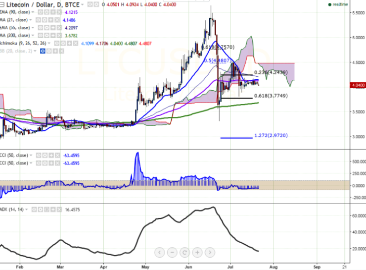 After trading in a narrow range for past couple of days, LTC/USD showed weakness today, falling to 4.04 levels at the time of writing (BTC-e).