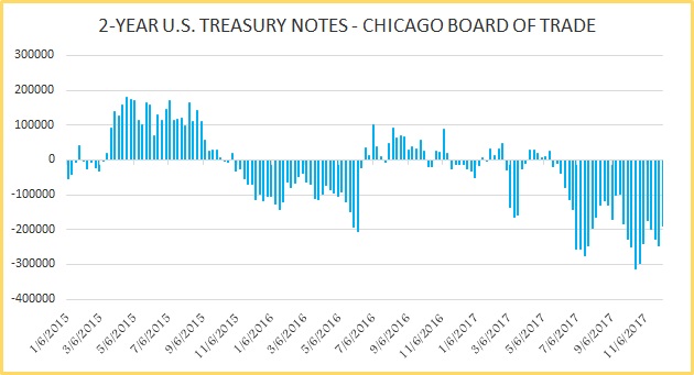 5-year treasury short positions rose last week, and by 109,735 contracts that brought the net position to -371.5K contracts.