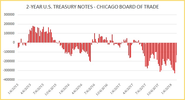 5-year treasury short positions declined last week, and by 101,098 contracts that brought the net position to -352.5K contracts.