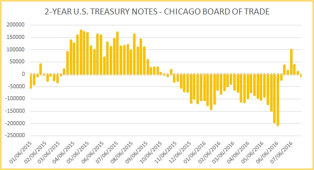 5-year treasury saw an increase in net short position by 52,305 contracts, and thus bringing the net position to -201.3K contracts.