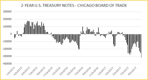 5-year treasury short positions got increased for the seventh consecutive week, and by 143,994 contracts that brought the net position to -445.6K contracts.
