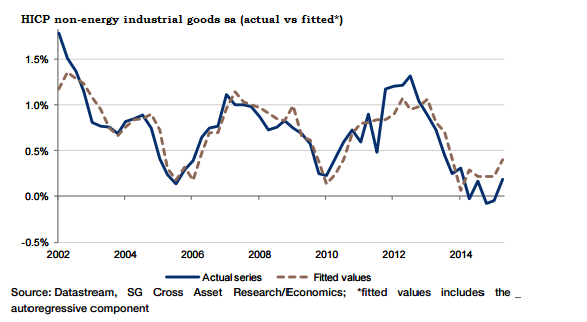 "This suggests that price pressure in nonenergy goods is driven more by domestic factors such as unit labour cost, unemployment, and capacity utilisation rate rather than external factors, in this case, China", says Societe Generale.