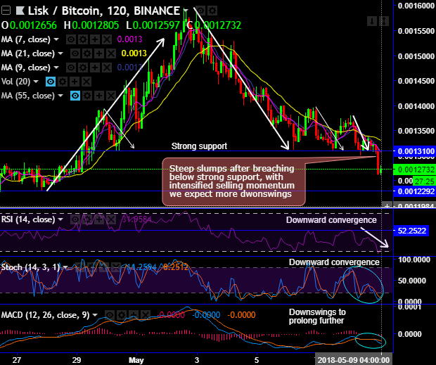 As you could see, LSKBTC at Binance has tumbled with a steep price slump after breaching below strong support at 0.0013100 levels.