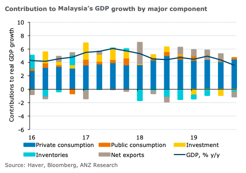 Malaysia recorded the weakest growth of 3.6 percent y/y in a decade during the last quarter of 2019, primarily owing to weak external demand. With the Malaysian economy facing myriad headwinds, including lower tourism income and demand for commodities, an improvement in growth is unlikely, at least until Q2 2020, ANZ Research reported.