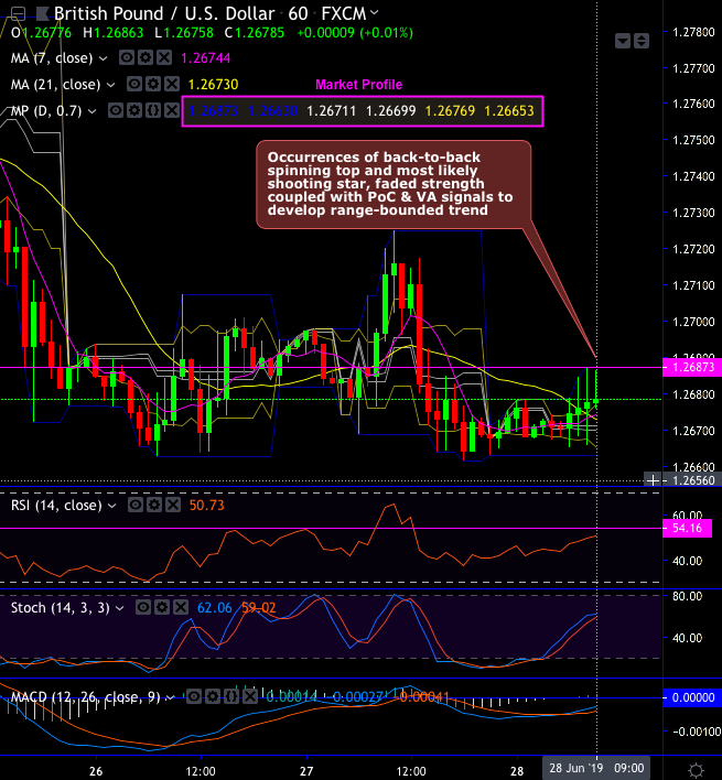 Cable prices are finding some two-way price action around 1.2687 levels (unfair highs as per MP) in the minor trend and at 1.2663 levels, the major trend is divergent with the intra-day studies we highlighted now unwinding.