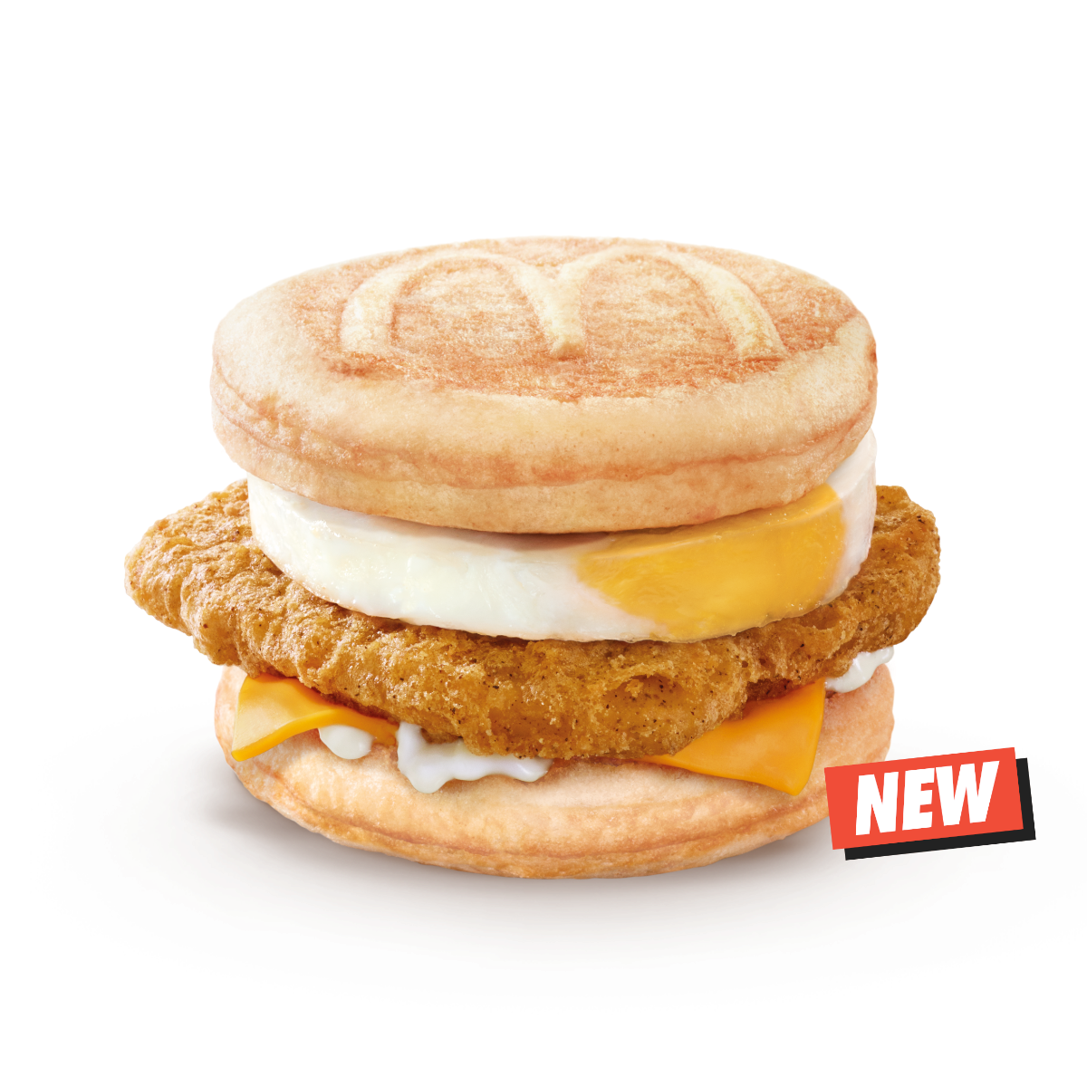 The new Chicken McGriddles with Egg, which costs $5.90, has a crispy chicken patty that is perfectly layered with melted cheese, a round egg, and a touch of mayo.