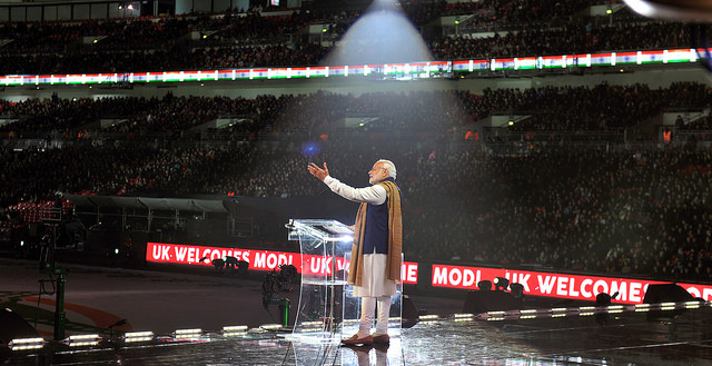 By conflating Islam with terrorism (and vice versa), Modi evokes an Indian humanity that does not include Muslims. M. M./flickr
