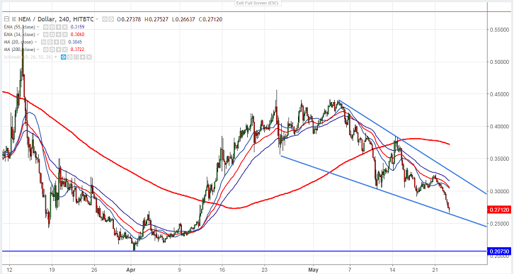 - NEM currently holds the 15th position on Coinmarketcap with market cap of approximately 2.4 billion USD and price is currently trading around $0.2700. The pair is expected to trade higher on account of Catapult announcement.