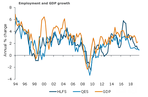 Employment growth in Q4 was weak, with HLFS employment (a survey of households) flat q/q. Annual employment growth was also flat at 1.0 percent, and continues to move within the broad range of indicators. QES employment (from a survey of businesses) was also modest. QES filled jobs rose 0.1 percent q/q, with annual growth slowing from 1.1 percent in Q3 to 0.9 percent.