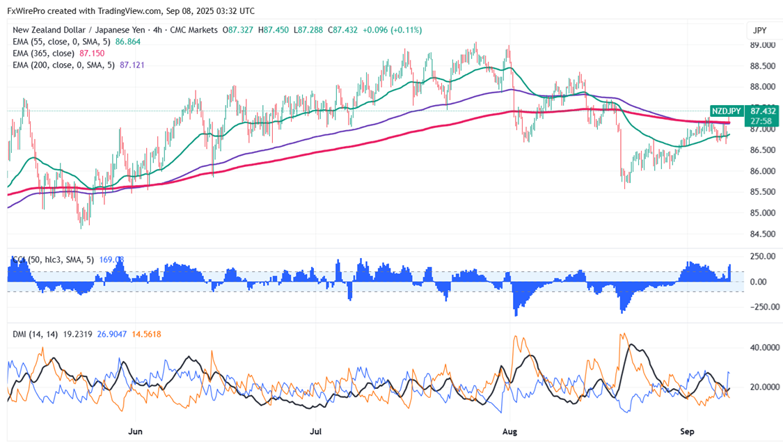 The near-term resistance is around 87.90, breach above targets 89.20/90. The immediate support is at 86.80; any violation below will drag the pair to 86.50/86/85.50/85.10/84.06.