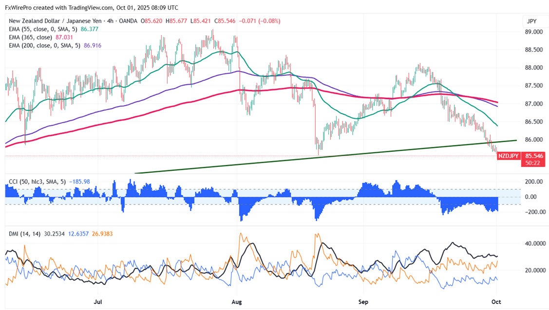 The near-term resistance is around 86.75, breach above targets 87/87.40/89.20/90. The immediate support is at 85.75; any violation below will drag the pair to 85.50/85.10/84.06.