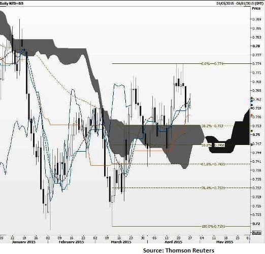 Above Ichimoku cloud keeps long trade remains in play The cloud top is at 0.7534 today. 0.7590 is the current low Friday's price action formed a long legged doji which represents indecision