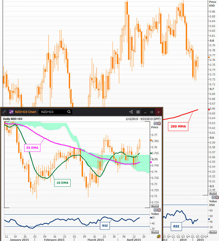 - Market still large net-short NZD, test of 0.7400/10 likely, break then eyes ~0.7450