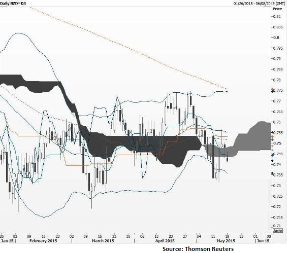 Pullback from 0.7564 extends and prices have probed under the cloud base Could see a full retracement to the 0.7318 lows from May 13 Have an offer now at cloud base for such an event
