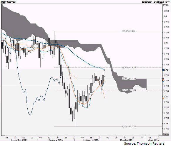 - 55 DMA and the 61.8% fibo at 0.7618 are close and may weigh on profit