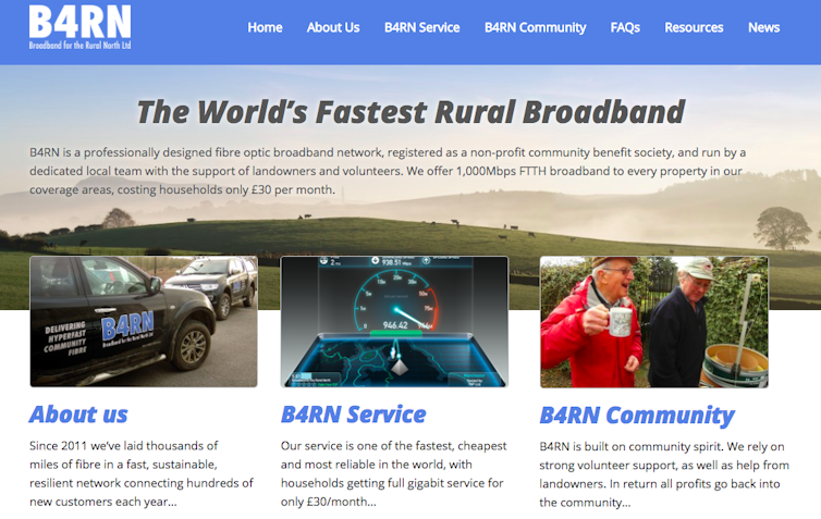 B4RN is a local initiative in the north of England that seeks to bring high-speed internet to rural areas. www.b4rn.org.uk