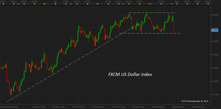FXCM dollar index bounced back from key support area, however still remains fragile enough.