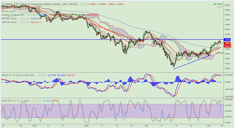 - The index is facing minor resistance around 17200 and any break above targets 17400/17780.