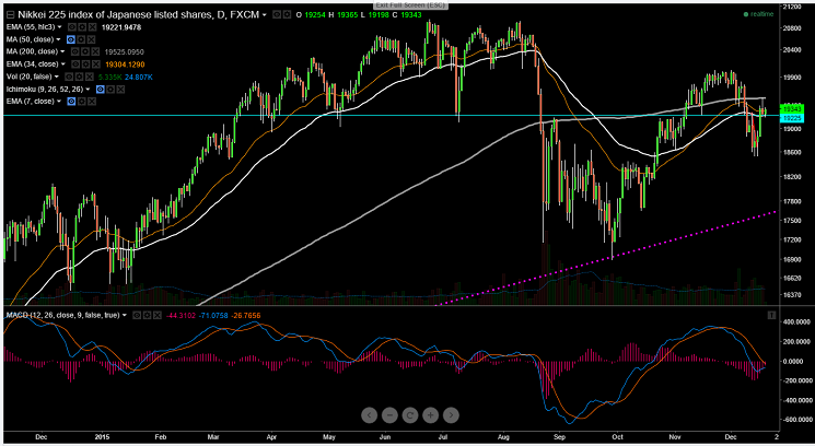 - Nikkei has retreated after making a high of 19537 and declined till 19198. It is currently trading around 19335.