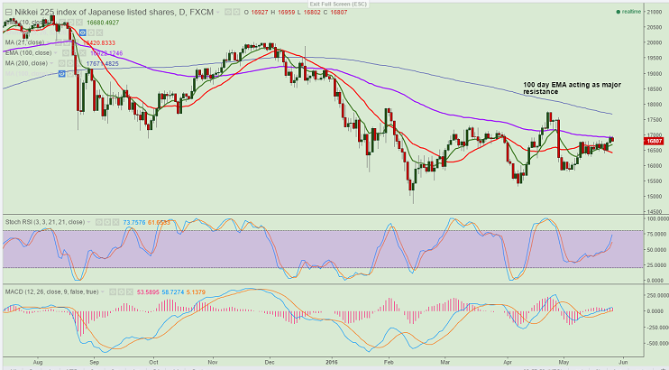 - Nikkei index has jumped till 16985 yesterday and slightly declined from that level. It is currently trading around 16804.