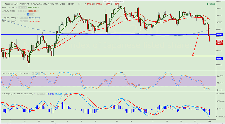 - The index has broken major support 16500 and declined till 16253 at the time of writing.It is currently trading around 16278.Short term trend is bearish as long as resistance 16700 (7 W EMA) holds.