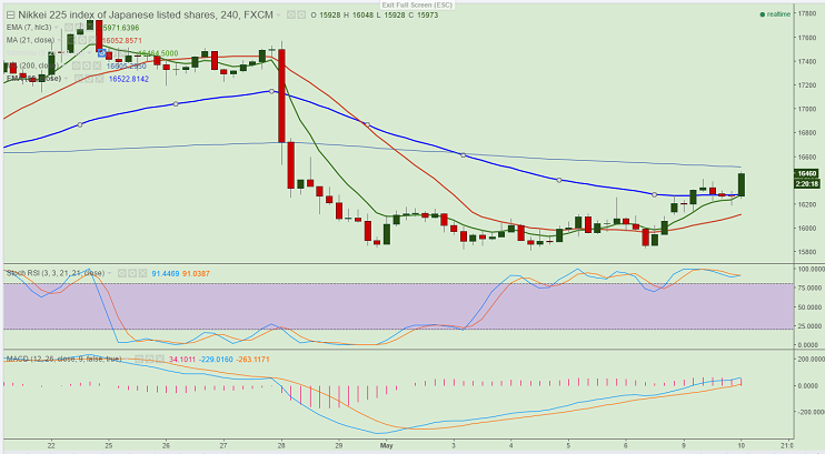 - Nikkei index has broken major intraday resistance 16300 and jumped till 16477 at the time of writing.It is currently trading around 16440.