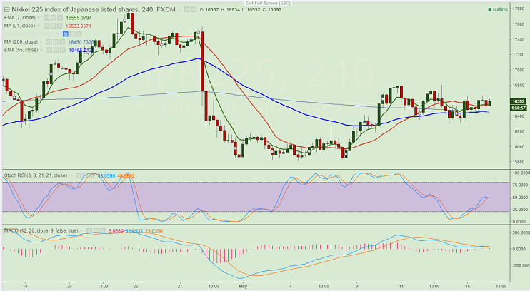 - Nikkei index has slightly recovered after making a low of 16404.It is currently trading around 16582.