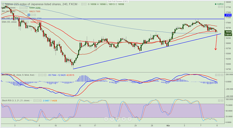 - The index is facing minor resistance around 16800 and any break above targets 17030/17200.