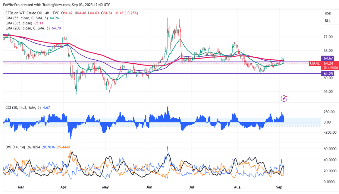 Crude oil prices lost their shine as the market expects an OPEC production increase. It hits an intraday low of $64.03 and is currently trading around $64.20.