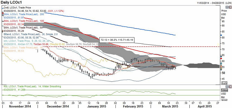 - Brent below the 50DMA, 55.00, and testing lower 30DMA Bollinger