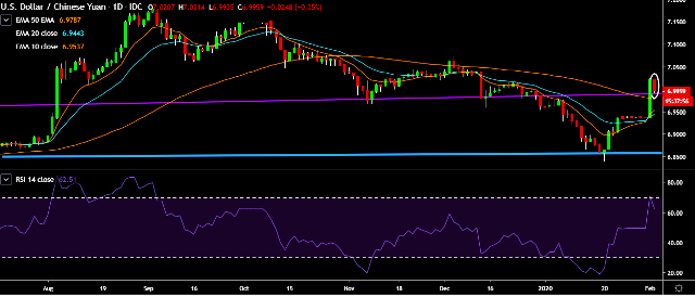 We prefer to take short position on USD/CNY around 7.00, stop loss at 7.0215 and target of 6.9550.